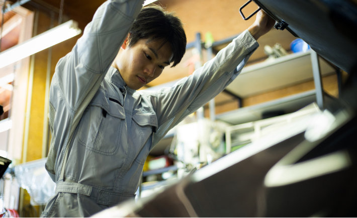 いたしません。あらゆる車種の鈑金をこなしてきた経験から、正規部品交換、リサイクルパーツ交換、その他の板金加工などの特徴をお客様にご説明し、ご理解いただいたうえで、お客様がお決めになったどんな修理方法でも、迅速、丁寧で確実な作業をさせていただきます。